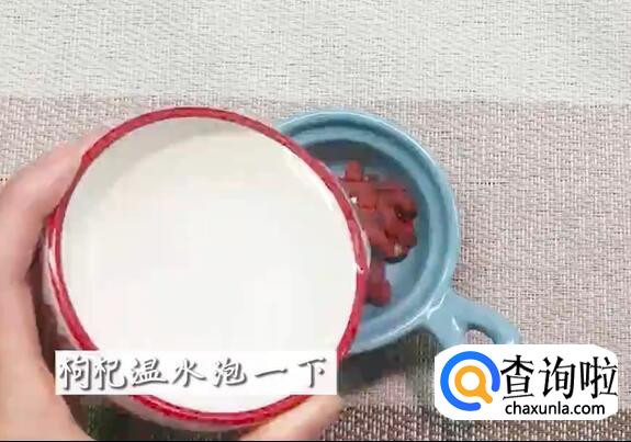 枸杞用温水泡一下。