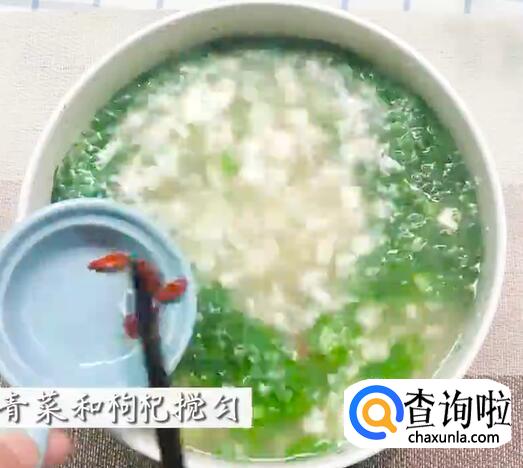 锅中加入青菜和枸杞。