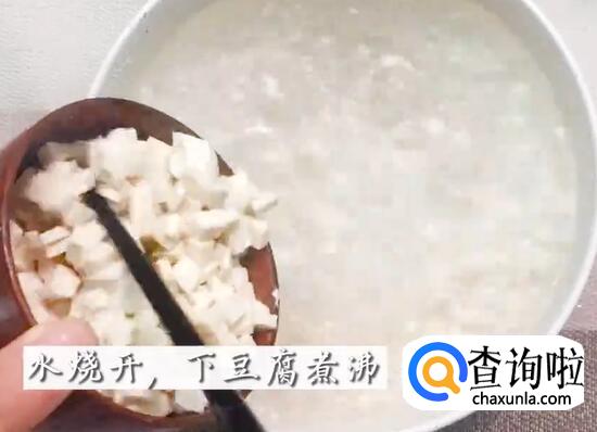 水烧开,加入豆腐,再次煮沸。