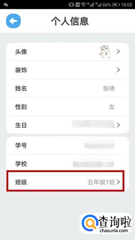 看到了班级,现在是五年一班,那么我们点击这里可以交换。如图所示。