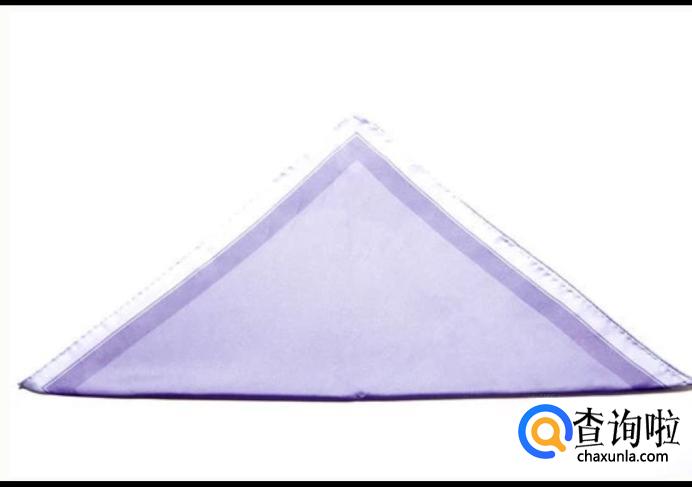 首先把口袋巾平铺,铺成正方形的样子,选择其中的一个角,向前或者像后翻折(根据自己的习惯来翻折)。