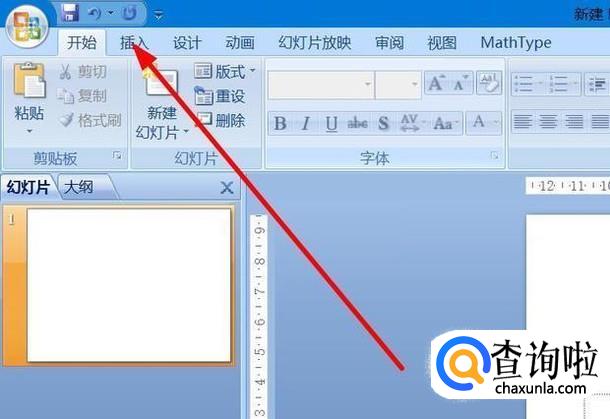首先打开一张PPT,并点击左上方的插入按钮。