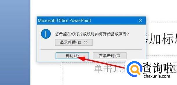 选择准备添加的背景音乐并点击确定。在出现的提示框内,选择打开PPT时自动播放音乐。