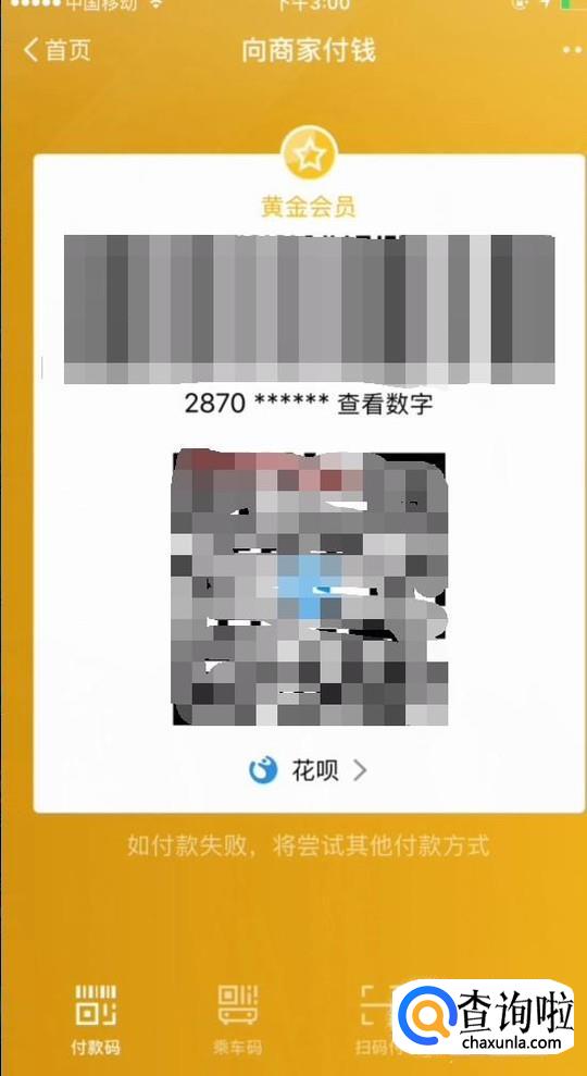 在向商家付钱时,可以直接出示付款码,并在付款码下方选择付款方式。付款码不需要自己输入密码,所以出于对个人财产安全的考虑,大家一定要保护好自己的付款码。