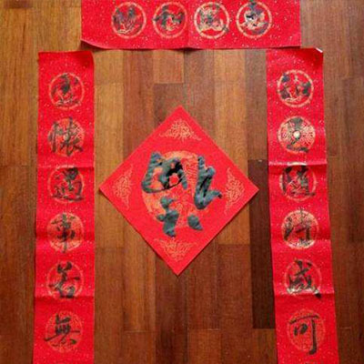 春联,又称“春贴”、“门对”、“对联”,是过年时所贴的红色喜庆元素“年红”中一个种类。它以对仗工整、简洁精巧的文字描绘美好形象,抒发美好愿望,是中国特有的文学形式,是华人们过年的重要习俗。当人们在自己的家门口贴年红(春联、福字、窗花等)的时候,意味着过春节正式拉开序幕。