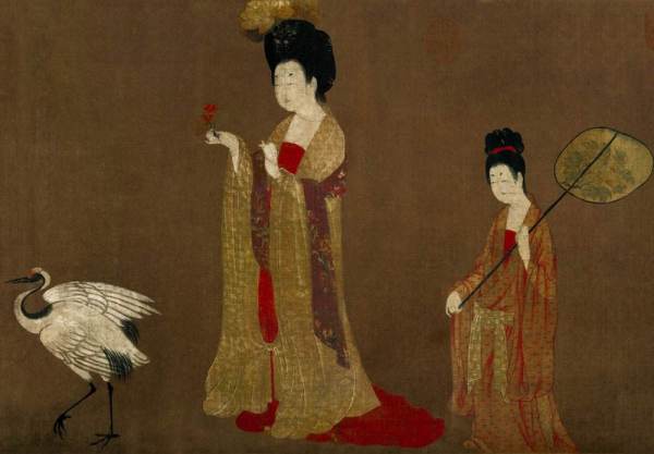 佛教发展对审美取向的影响:唐朝政治开明,对外交流加强,使得外来宗教佛教。这样的宗教艺术中的形象直接影响着唐朝女性的审美观,致使作为佛教忠实信仰的女性群体;在内心开始以佛的形象塑造自己,继而在生活中更加敢于展现自己的形体之美,开始穿羊肠裙,袒胸露臂,尽显肉体的丰腴和婀娜多姿的体态。