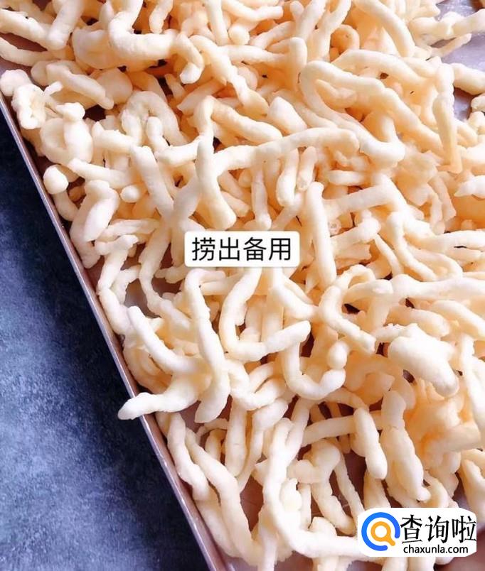然后把炸好的面条捞出控油放凉,如下图所示。