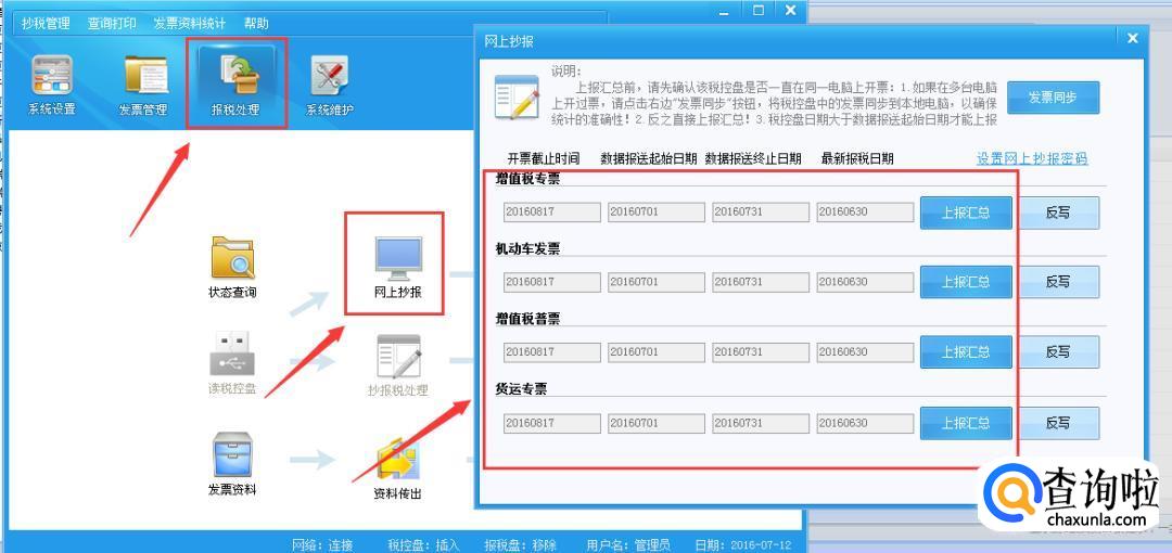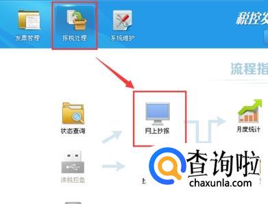 进入页面后,点击左上的“报税处理”选项。然后找到“网上抄报”,点击进入。