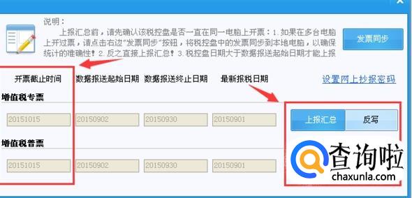这时会出现一些信息,你核对好时间段等信息以后,点击“上报汇总”,你可以根据情况选择是否“发票同步”。