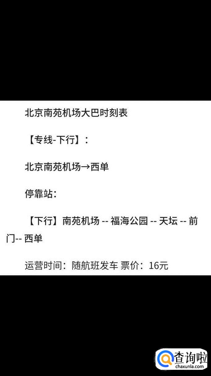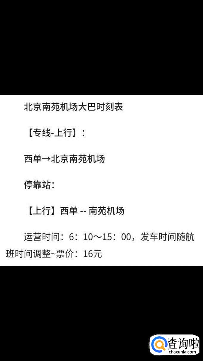 下行专线是从南苑机场到北京,发车时间依据航班而定,票价16元。