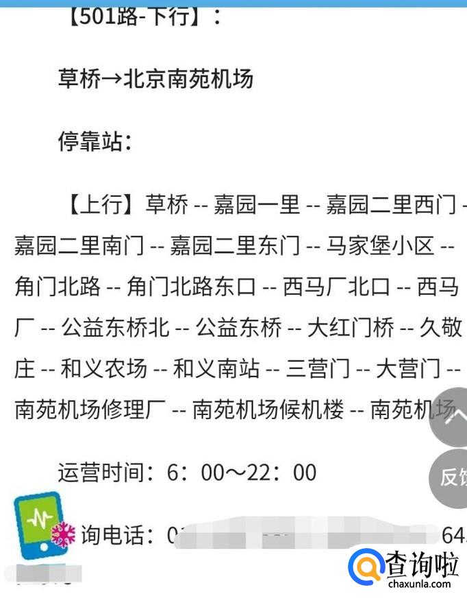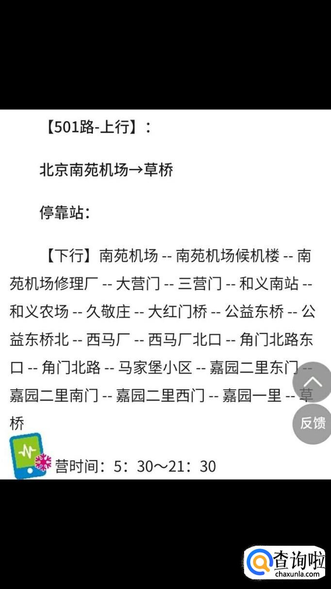 501下行发车地点为草桥,小伙伴们可以搭乘该路线去机场,票价时间和501上行相同。