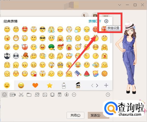 进入后,点击进入聊天界面,点击聊天界面的【表情】图标,然后点击表情右上方的【设置】符号。