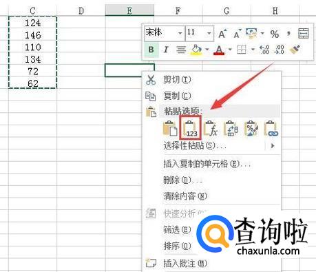 点击复制之后再另外选择单元格,然后单击鼠标右键找到粘贴里的数值选项,如图所示:
