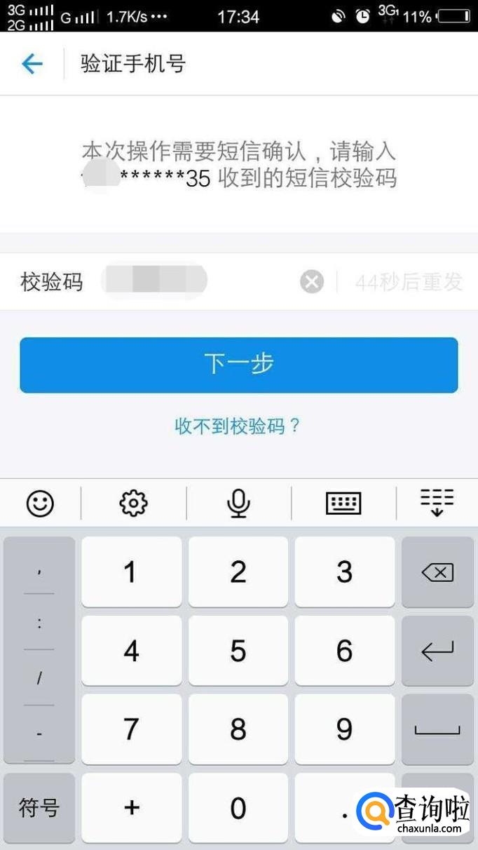 点击获取校验码,收到校验码后输入,然后点击下一步。