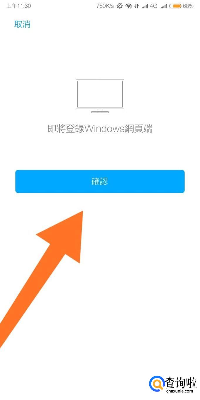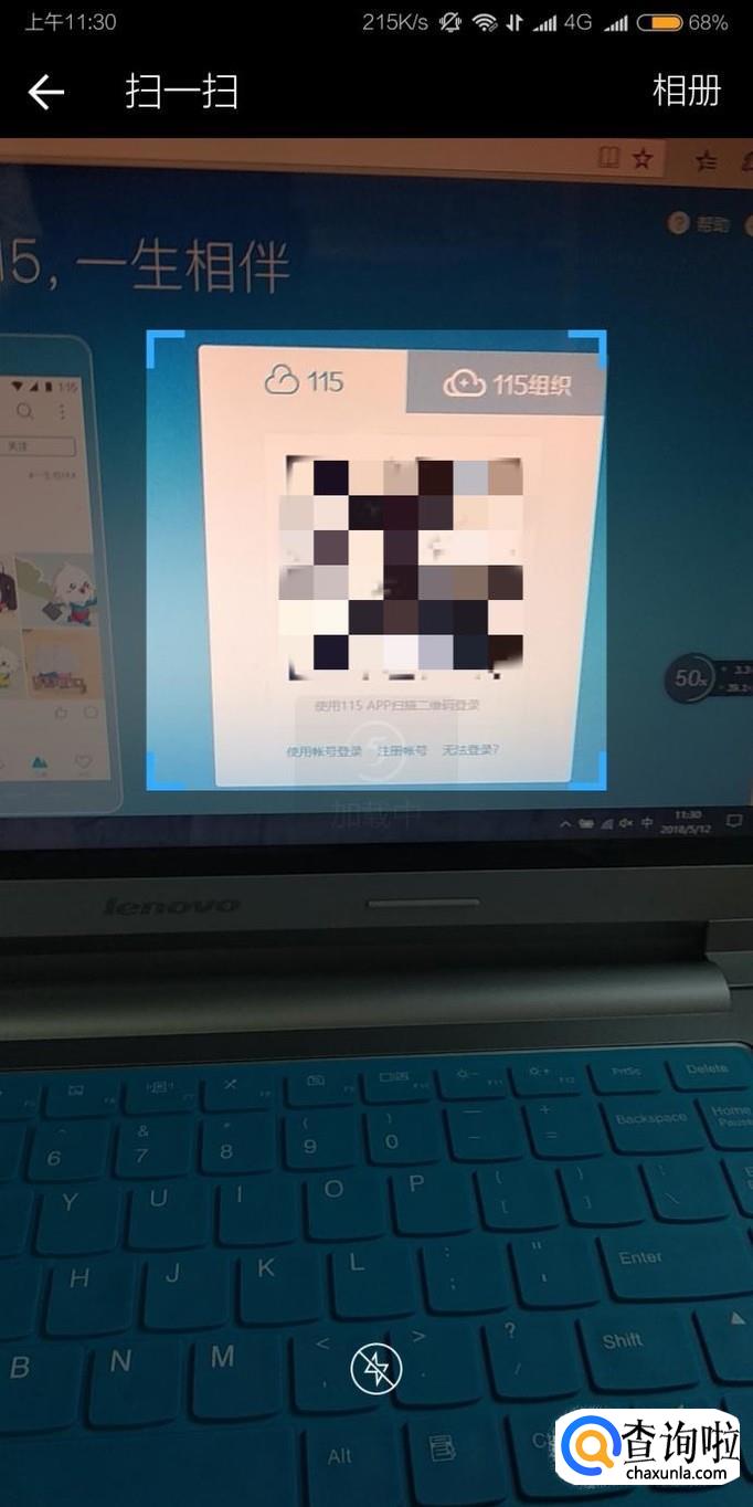 接着扫描电脑屏幕上的二维码。