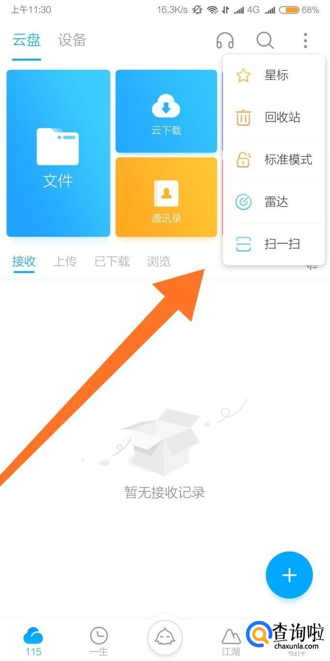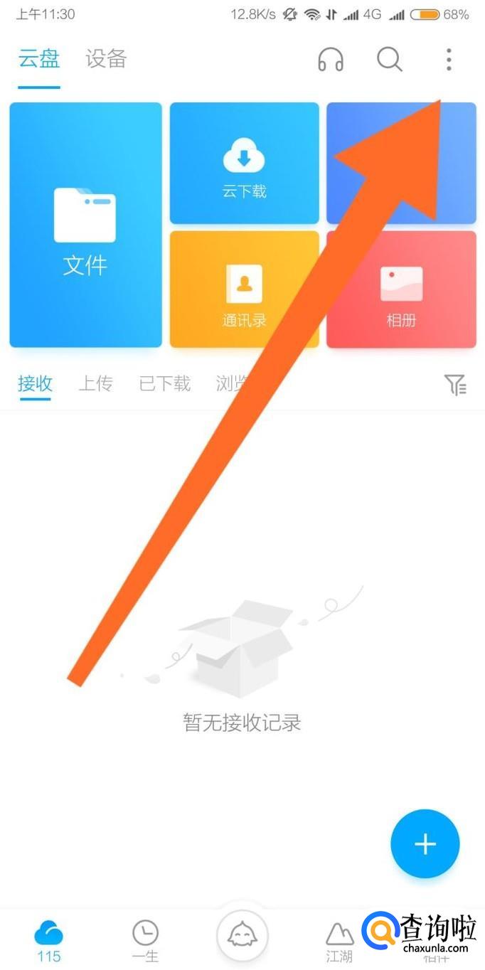 首先点击115网盘手机客户端屏幕右上角的省略符号,然后点击“扫一扫”。