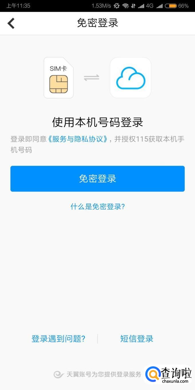 115网盘可以使用手机号/账号+密码、微信账号和手机短信验证码登录,还可以使用手机SIM卡免密登录。