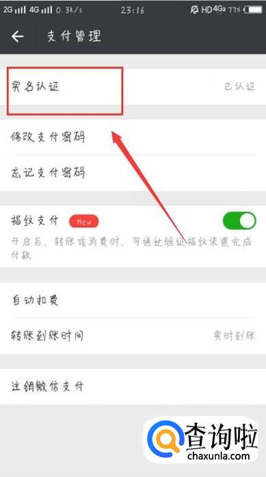 在“支付管理”页面,点击“实名认证”,进入实名认证页面,如图所示。