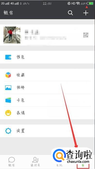 打开微信,登录自己的账号,点击“我”页面,如图所示。