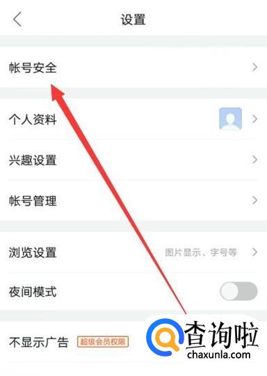 进入之后,点击“账号安全”,进入下一页面,如图所示。