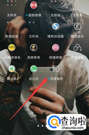 打开手机,找到百度贴吧,点击并进入,如图所示。