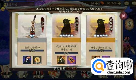 想要快速完成任务的话,建议去刷第12章副本中的2个海坊主,可以获得2个海坊主碎片。当然如果在妖气封印中碰到海坊主,肯定是优先去这里刷,一次可得到3个海坊主碎片。