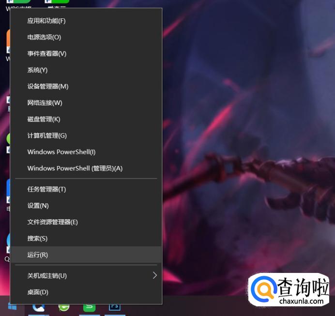 在弹出的菜单中点击“运行”。也可以直接按“WIN键+R”。