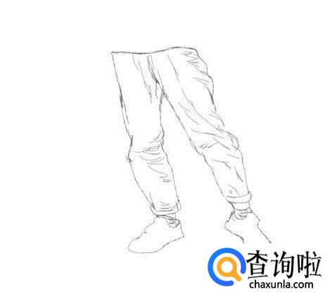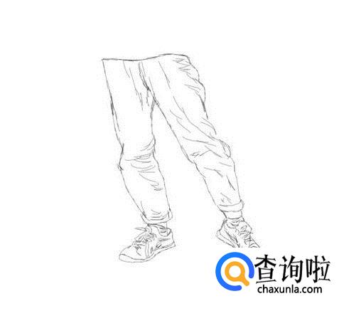 最后在人物的鞋子上画出鞋子的鞋带及其他细节,这样我们的速写姿势腿就画好了,如图所示: