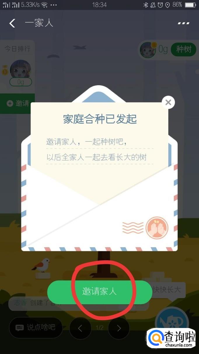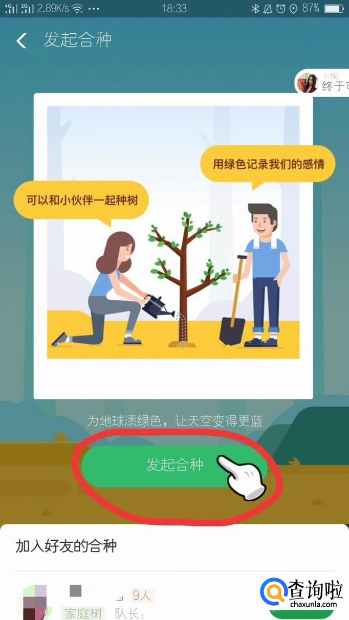 邀请想让他加入你合种树的好友,把邀请信息发送给他。目前每个人最多可以参与10个合种小队。