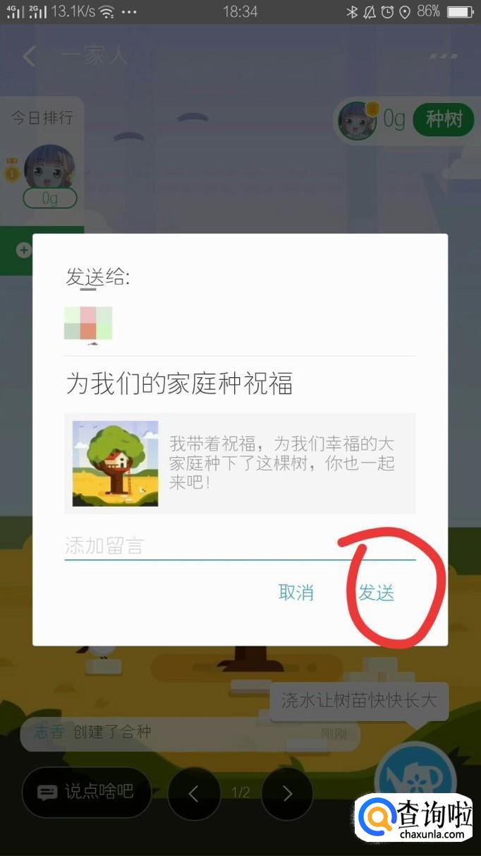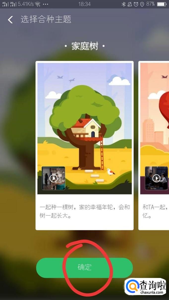 选择你想合种树的主题(目前是有家庭树、爱情树、好友树、同学林、同事林),然后点击确定。