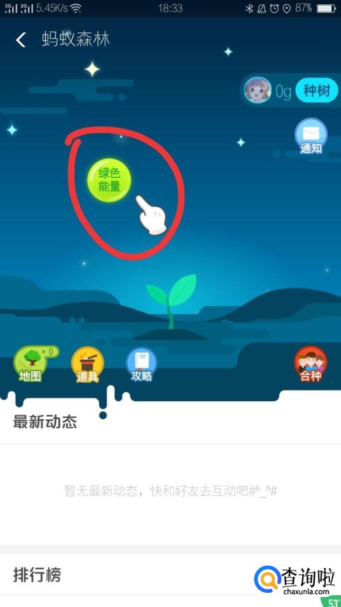 如果是刚开通蚂蚁森林的话,如下图所示内容,我们需要根据提示,可以收取蚂蚁森林的能量球来增加我们森林的能量。