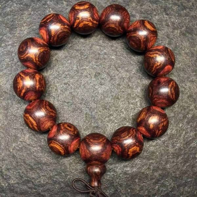 而手串本身是大多数人生活中的一种习俗或习惯,也是时刻警示自己修行布施,保持健康,调节身心。而黄花梨的药性就有调节身心,安身静气的作用。用黄花梨所制成的手串自然便成为了一些富贵之人的配饰。