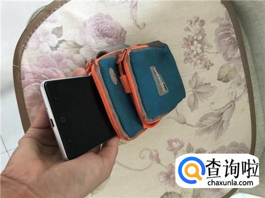 把你的手机装入手机臂带的最大空间的地方,并且把拉链拉上,见下图