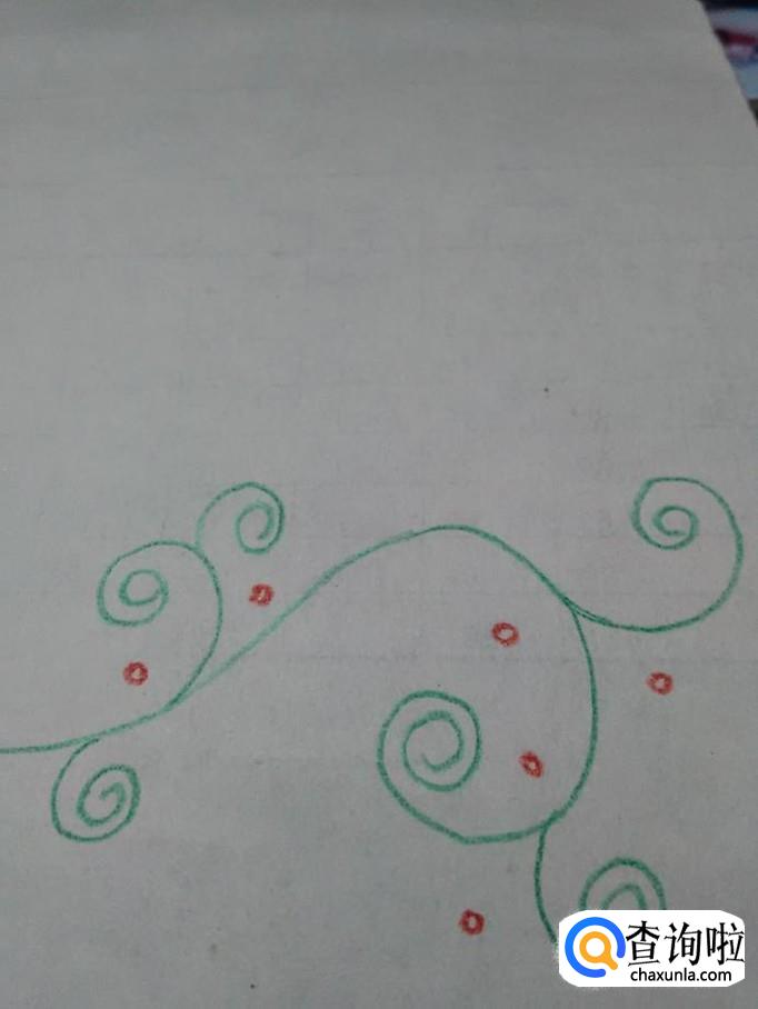 在藤蔓中间画几个小小的圆圈,表示花芯。