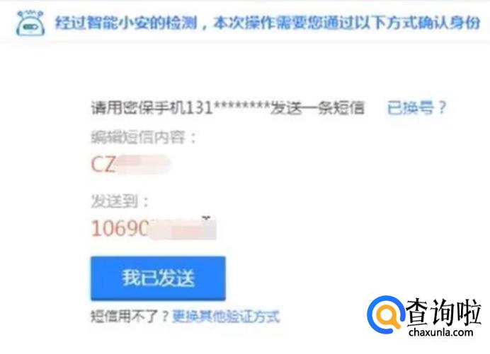 如果你曾经绑定过密保手机,那么会提示让你发送短信验证。