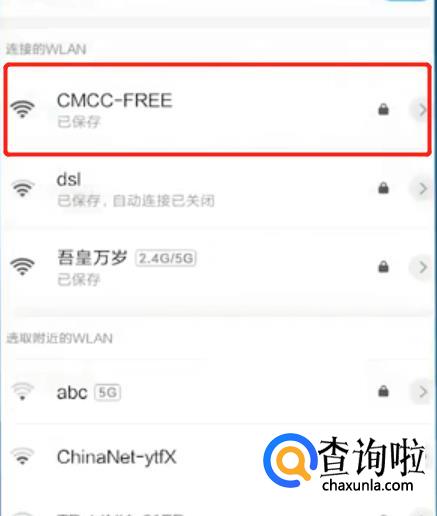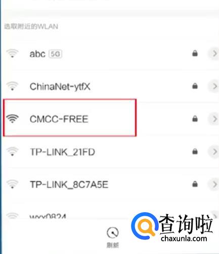 点击并连接上“CMCC-FREE”。