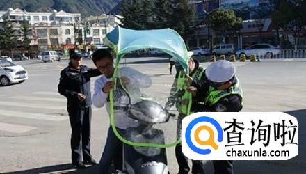 夏季来了,好多骑电动摩托车的都会在车身上弄一个遮阳伞,殊不知,阳光是遮住了,危险系数却高了。所以,这类情况交警也是不允许的。