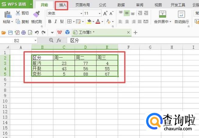 之后我们选中这些数据,然后我们点击工具栏中的插入;
