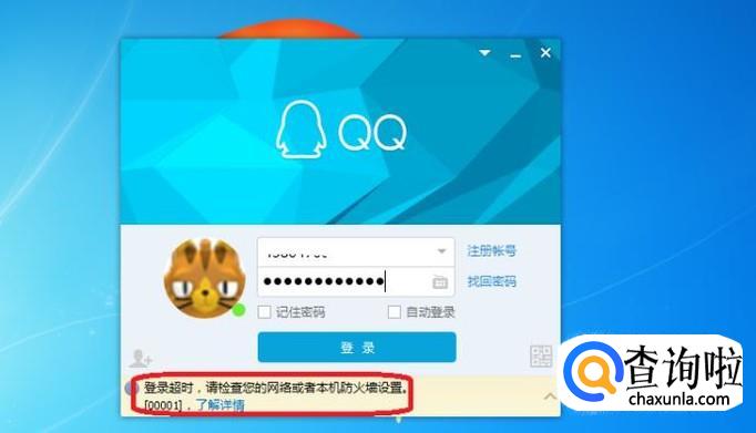首先,我们需要检查网络连接,如果是因为网络原因导致的登录不上,一般会有“登录超时”的提示,修复网络连接,就能登录了。