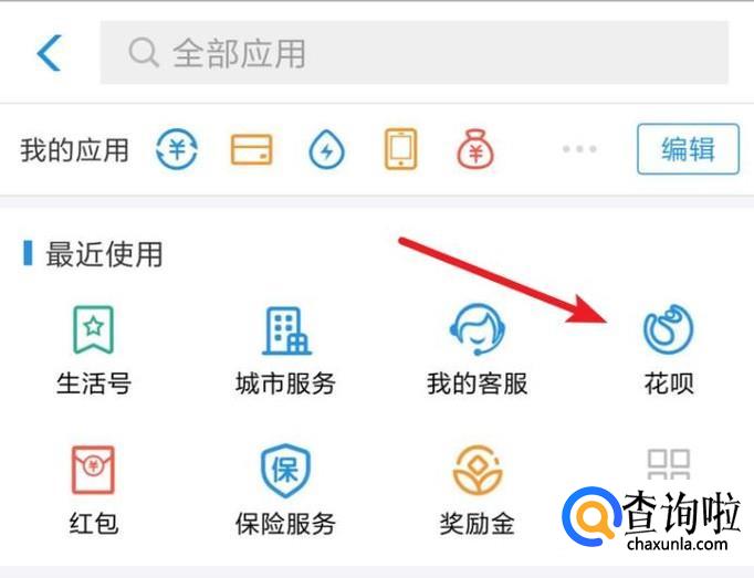 在更多页面,找到并点击打开‘花呗’