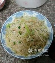 把豆芽洗干净沥干水备用,切好葱姜蒜备用。