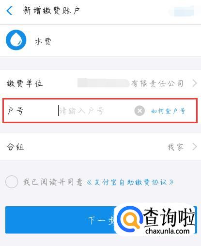 最后绑定自己家的户号,并点击【下一步】,然后就可以直接用手机交水费啦。