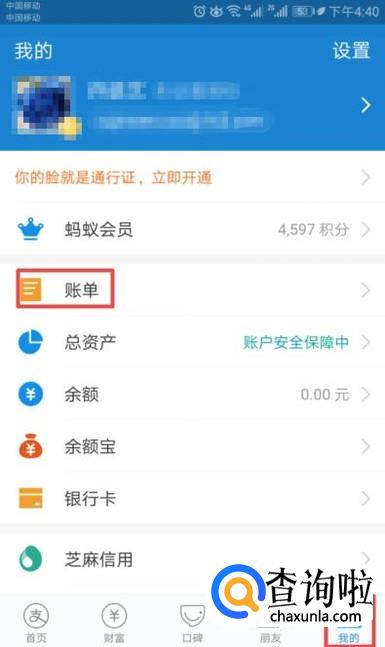 首先,我们打开我们的支付宝,然后我们点击我的,之后我们点击账单;