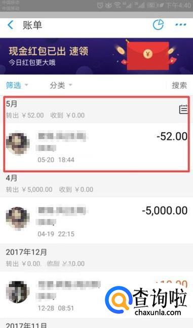 之后我们就可以看到转账的一些明细了,我们点击其中一个;