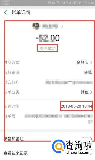 结果如图所示,这样我们就可以看到到账时间已经交易成功了。