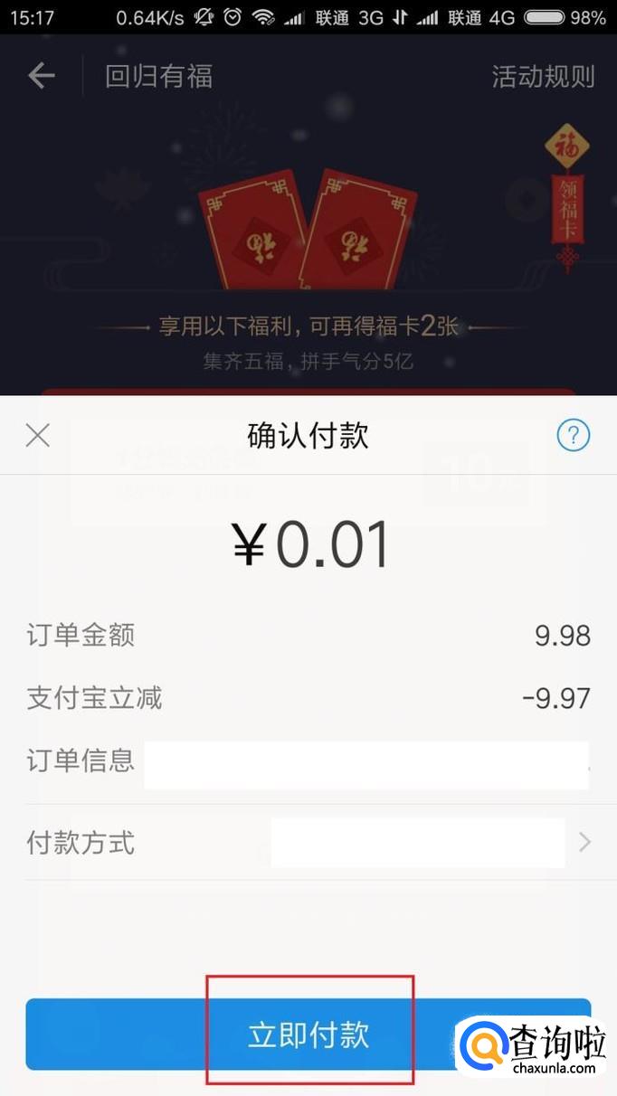 接下来,输入要充值的手机号码,然后选择支付方式之后就可以点击付款了。