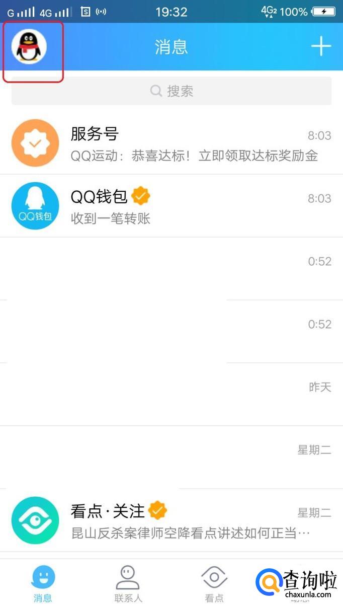 首先,我们打开QQ,如图所示,点击左上角头像。