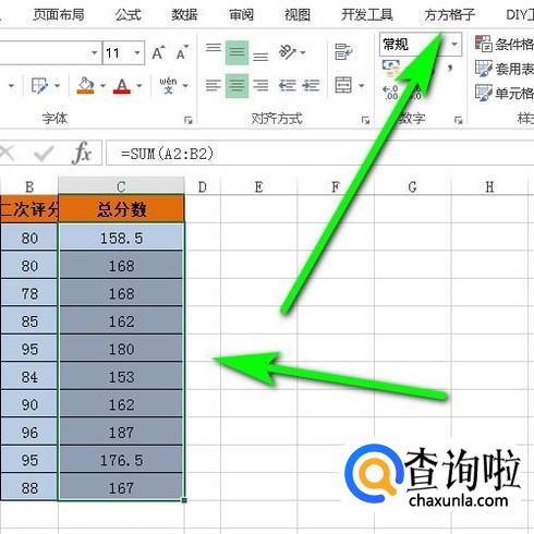 选中C2:C11;鼠标再移到菜单栏中点:方方格子