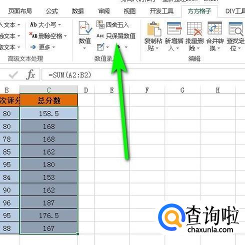 下面弹出功能组,再点:只保留数值