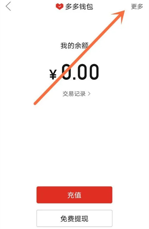 3、进入多多钱包后,点击右上角的【更多】;